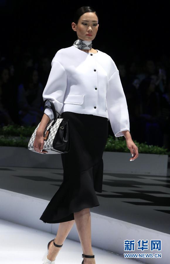 11月2日,模特在白领高级成衣发布会上展示一款春夏时装。当日,2015中国国际时装周(春夏系列)闭幕大秀“白领高级成衣发布会”在北京举行。 新华社记者李明放摄