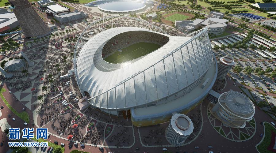 1月24日从卡塔尔2022年世界杯最高委员会(赛事组织方)获得的电脑绘制效果图展示了翻新后的卡塔尔世界杯赛场之一——哈利法国际体育场。新华社/法新