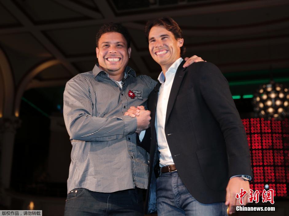 11月18日,网坛名将纳达尔与罗纳尔多在伦敦参加了一场扑克比赛,夺得胜利后的纳达尔难掩兴奋,表示将奖金捐给慈善机构。