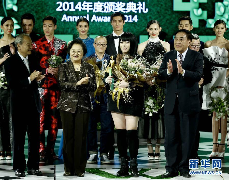 11月2日,模特在闭幕式上走秀。当日,中国国际时装周2014年度颁奖典礼在北京举行,在经过9天66场发布之后,中国国际时装周落下帷幕。 新华社记者陈建力摄