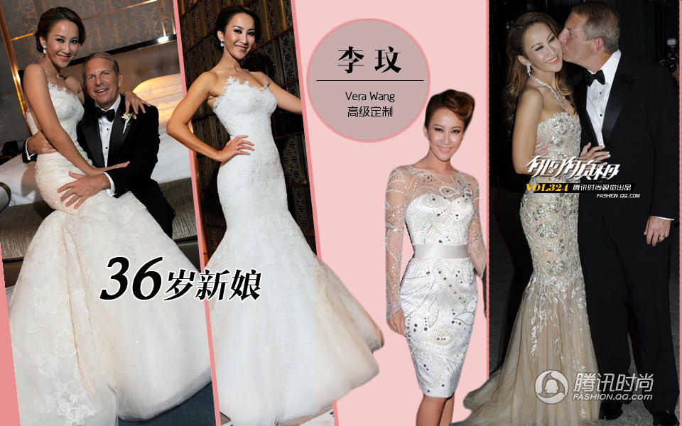 李玟:李玟简直就是鱼尾纱裙终结者,身着华丽的蕾丝抹胸婚纱,把她的好身材紧紧包裹,前凸后翘的身段,新郎官笑得嘴都合不拢了。无论是白色婚纱还是奢华的丝绣鱼尾裙,下摆的大胆设计更加突出李玟凹凸有致的火辣身材。鞋扣斜剪裁的精致短裙适合她的年龄又高端大欺上档次!