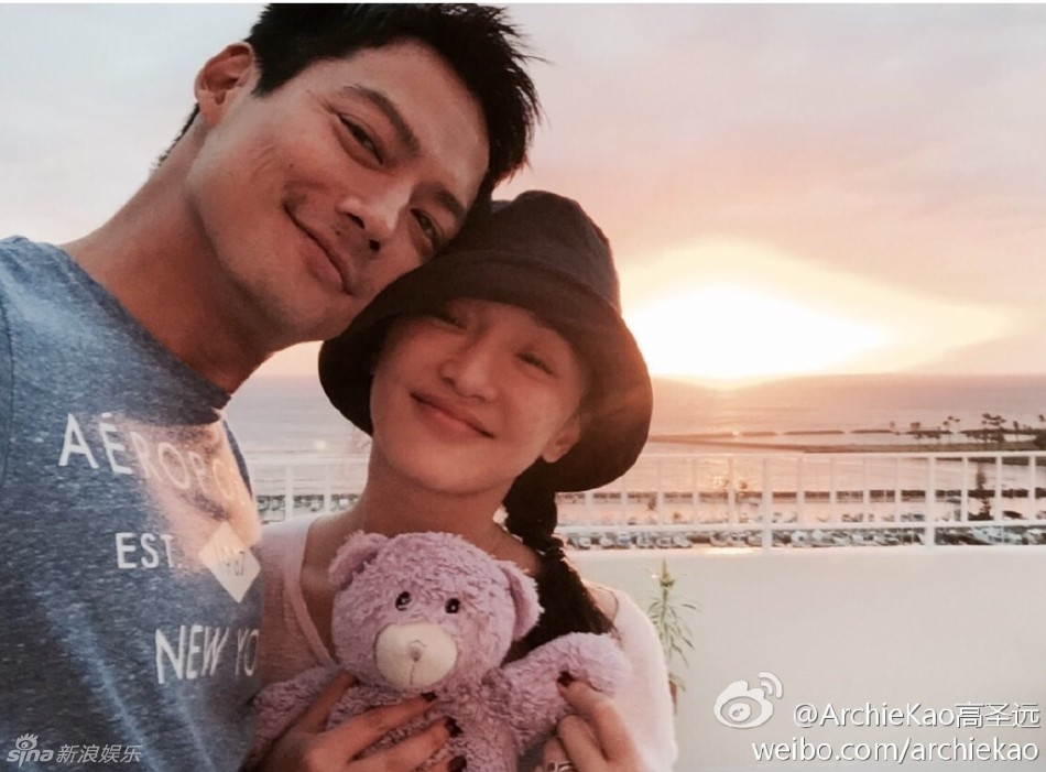 周迅7月闪嫁华裔演员高圣远,昨日(11月26日)凌晨,高圣远在微博晒出一组和周迅在夏威夷恩爱度假的照片,周迅梳着麻花辫,抱着小熊和老公依偎一起甜蜜合影。