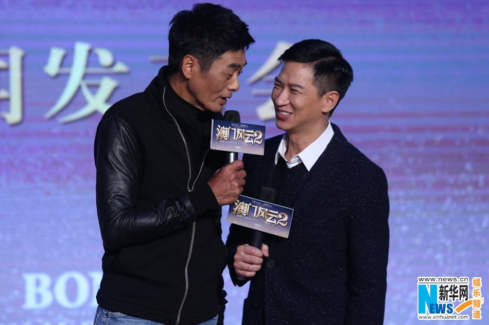 11月27日,由刘伟强监制,王晶导演,周润发、张家辉、刘嘉玲、余文乐、王诗龄等群星联袂主演的“七星级大娱乐”合家欢贺岁喜剧《澳门风云2》在京举办了首场新闻发布会,当天,影片监制刘伟强、导演王晶及出品方代表,博纳影业集团总裁于冬携主创周润发、张家辉、王诗龄在京集结亮相。