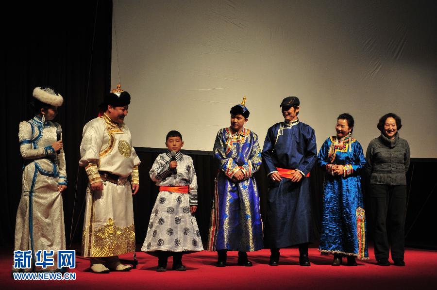 12月2日,影片主演阿穆隆(左四)、其那日图(右三)、萨仁高娃(右二)、朝格呼斯乐(左三)与导演冯亚平(右一)在首映典礼上亮相。当日,由内蒙古电影集团著名导演冯亚平执导的影片《第七种味道》在该片拍摄地——内蒙古自治区锡林郭勒盟东乌珠穆沁旗举办首映典礼,吸引大量当地牧民观看。这部影片在10月的第15届罗马亚洲电影节获评最佳影片,之前该片入围上海国际电影节新传媒大奖。新华社发(连振 摄)