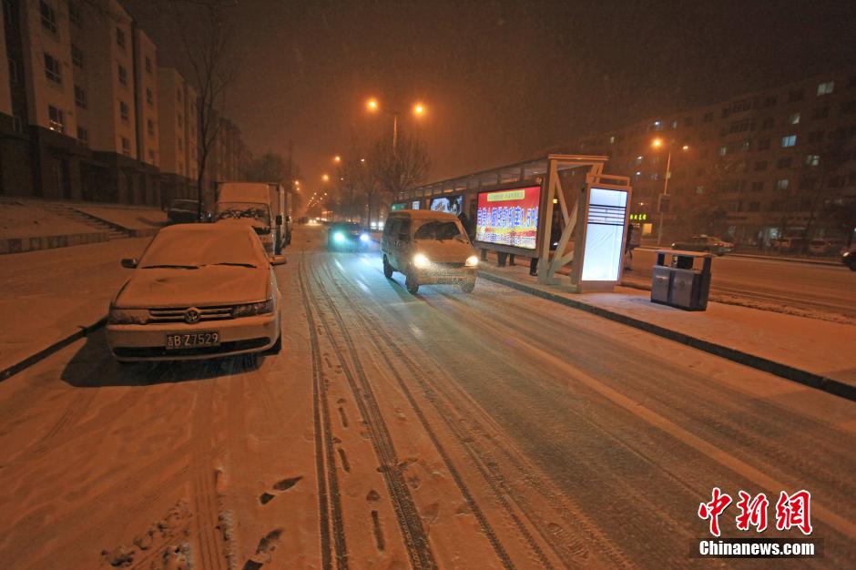 11月30日,吉林市民和车辆在积雪的路上前行。 中新社发 图片来源:CNSPHOTO