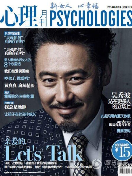 藏蓝格的西装搭配同色系的领带,让吴秀波的整个造型显得成熟、稳重。“站在更多人的立场上思考”,是吴秀波常说的一句话。
