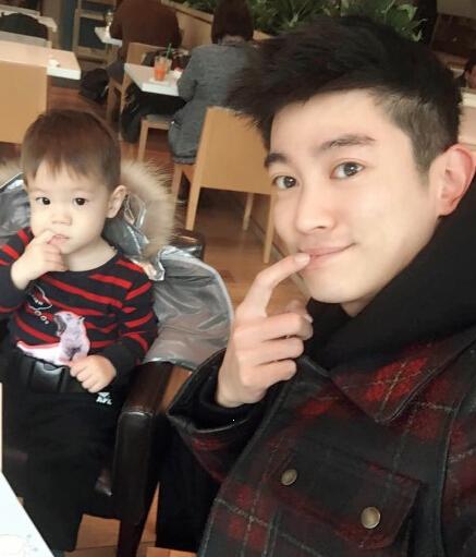 杜江与儿子卖萌。