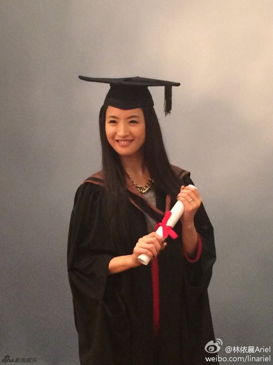 12月9日,林依晨在微博晒出一组毕业照。照片中,她穿着学士服、戴着毕业帽,开心和同学合影。小女人手捧鲜花,一脸幸福。粉丝纷纷恭喜女神顺利毕业!