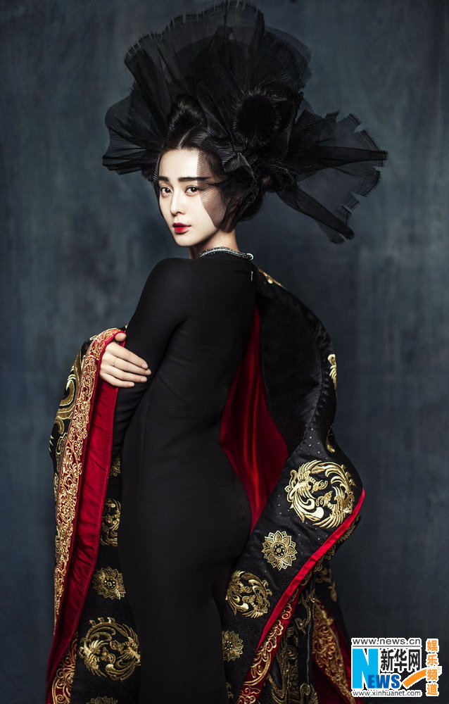 在此番拍摄的时尚大片中,范冰冰身着各式华服,以黑色厚纱为头饰,缀以点绛唇和一字眉,肩头描绘悠然仙鹤,柔媚与硬朗互相交织,现代时尚与古典之韵汇聚融合,整体造型令人啧啧称奇。值得一提的是,在这一次的拍摄中,范冰冰还披上了自己心爱的《武则天》戏服,将时装和古装完美搭配,通过更加摩登的方式,在戏外重新演绎出了一代女皇武则天的霸气与果敢。此外,范冰冰和陈漫多年来的默契和灵感的碰撞,也在这组大片中得到充分的体现和诠释。