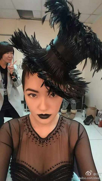 中新网12月10日电 昨日,小S在微博晒出一张自拍,照片中,小S化着黑色系彩妆,穿黑色薄纱低胸装,涂着黑唇膏,头上戴夸张羽毛头饰。她还发文称:“跟厉害的团队合作,爽!后面那个虽然看起来不聪明,但其实很厉害。”