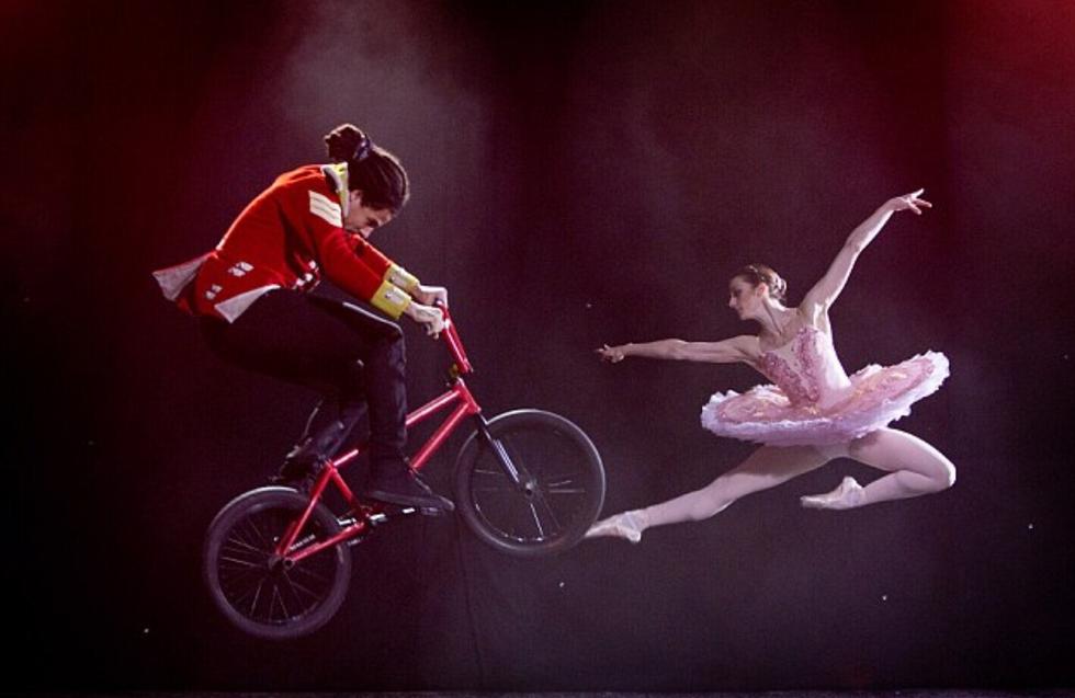BMX小轮车,爱好极限运动的人都知道这是一项疯狂而危险的运动。可是最近,英国的两位明星级小轮车手却在舞台上与芭蕾舞者共同演绎了芭蕾舞经典剧目柴可夫斯基的《胡桃夹子》,表演生动展现了他们鲜为人知的风度与优雅。(腾讯新闻独家编译,未经授权,不得转载。)