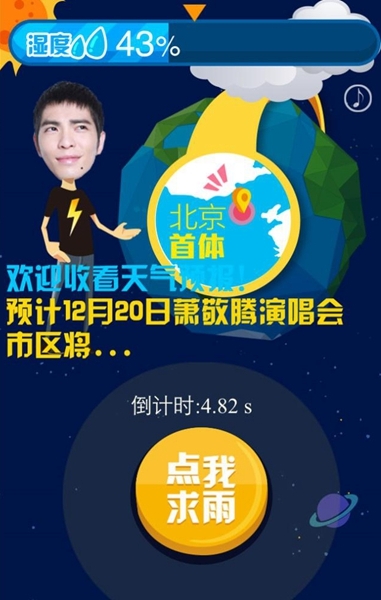 今日,凤凰视频PC端及微信端抢票通道已正式开启。在微信端,凤凰视频还为粉丝们准备了好玩的“弄湿萧敬腾”—“点我求雨”的游戏,在19日之前获得分数最高的50人将各获免费网络直播票一张。