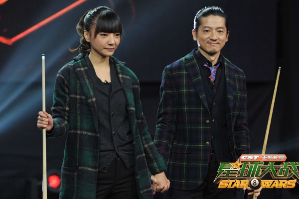提到擅长打台球的男友人,春晓下意识拨通老公彭坦电话,娇俏邀请彭坦为自己助阵。为了替爱妻“复仇”,以“清新”、“暖萌”的文艺男青年形象著称的彭坦在台球桌上频频开挂,杀气十足,男神荷尔蒙爆棚。而镜头前御姐范儿的春晓在爱人面前则变身乖巧猫女,两位男神女神的默契搭档让人联想到国版“史密斯夫妇”。