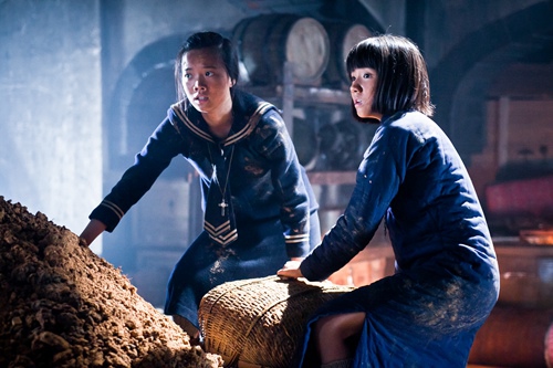 就像每一部小说都有自己的“胚胎”,《四十九日祭》的原作《金陵十三钗》也有。作者严歌苓被“风尘女代替女学生赴宴”的故事胚胎所感动,然后增添枝叶才最终完成作品,所以,尽管本周六《四十九日祭》就将迎来收官,但可以说故事的高潮才刚刚来临。在邀请的“庇佑”下,教堂暂时风平浪静,在教堂外挖坑填埋尸体的日军甚至也压抑住了兽性,与教堂中的女人隔窗而望、互不侵犯,但当女学生们一起爬上教堂的楼顶,绝望的情绪被渲染得格外真切。