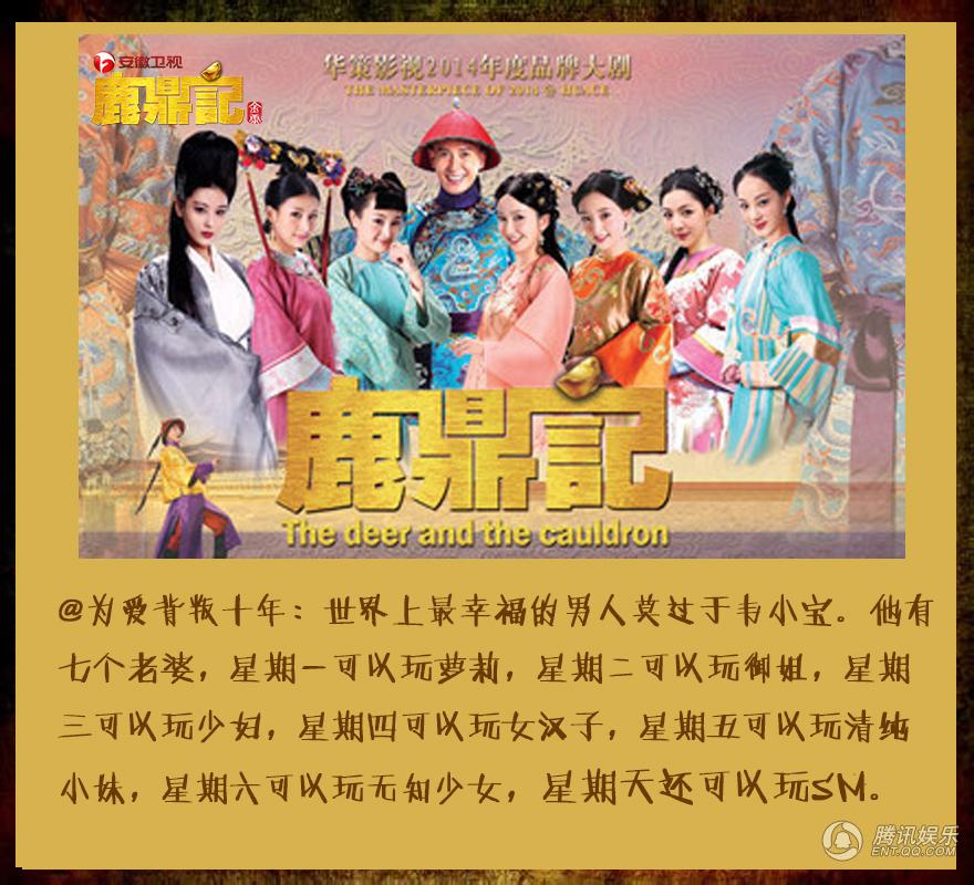 台湾知名导演赖水清执导的金庸武侠大剧《鹿鼎记》日前在安徽卫视盛大开播。该剧汇集了韩栋、张檬、贾青、张馨予、娄艺潇、魏千翔等多位偶像明星,更有王琳、米雪、何中华、计春华等一众实力派演员鼎力加盟。剧集甫一播出,就引来了不少热心观众的关注和热议,网络上关于《鹿鼎记》的评论更是铺天盖地,创意频出,推动“鹿鼎记”成为了最近的网络热词。