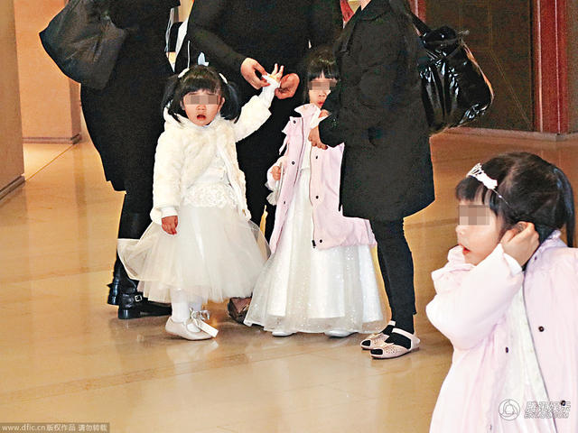 难得黎姿与丈夫带着三名作公主打扮的女儿现身餐厅的倒数派对