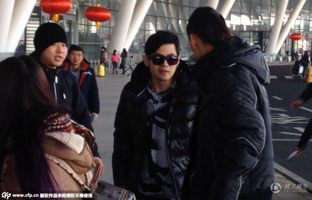 腾讯娱乐讯 江苏省南京市,1月1日,参加完2015江苏卫视跨年演出后的周杰伦和女友昆凌一同返台。周杰伦现身机场,获得众多保镖贴身护驾,心情大好的周董还满足了粉丝的签名要求。因要保护女友昆凌免受粉丝打扰,二人分开入关尽显低调。