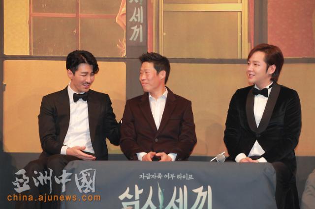 据韩国《亚洲经济》报道,9日13时,演员张根硕、车胜元、柳海真出席在首尔一酒店召开的新档综艺节目《三时三餐》发布会,现场聚集大批媒体记者,发布会外围摆满了“鳗鱼(张根硕)”粉丝送上的精美花环。