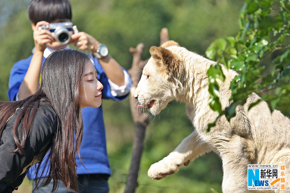 倪妮大胆与白狮亲昵 “喵总“降临猛兽变“萌兽“
