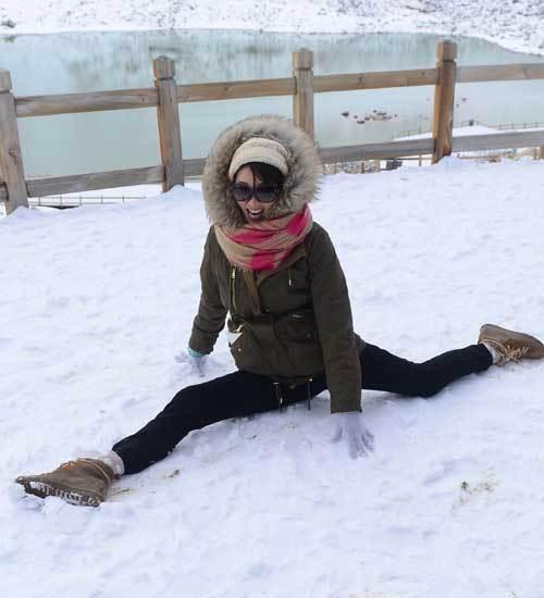 林志玲曾在拍摄节目时,在雪地中劈叉