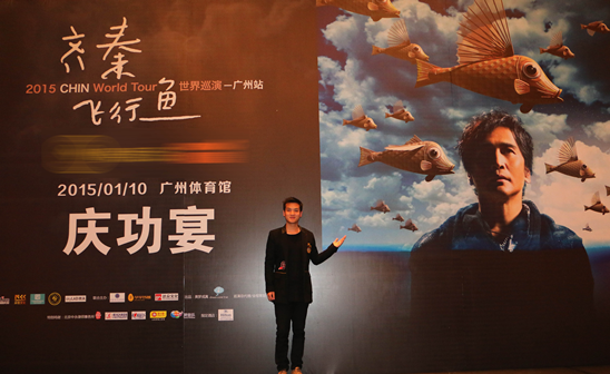 齐秦“2015 CHINWorld Tour飞行鱼”世界巡演在广州天河体育馆完美落幕。晚上的庆功宴,齐秦与李菓畅聊,李菓夸赞小哥精神帅气。