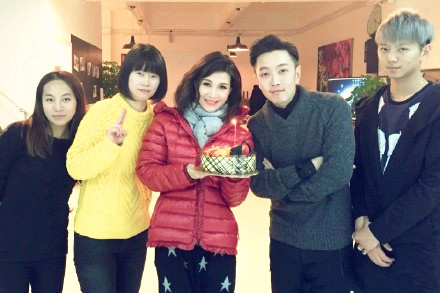 童蕾与工作人员合影