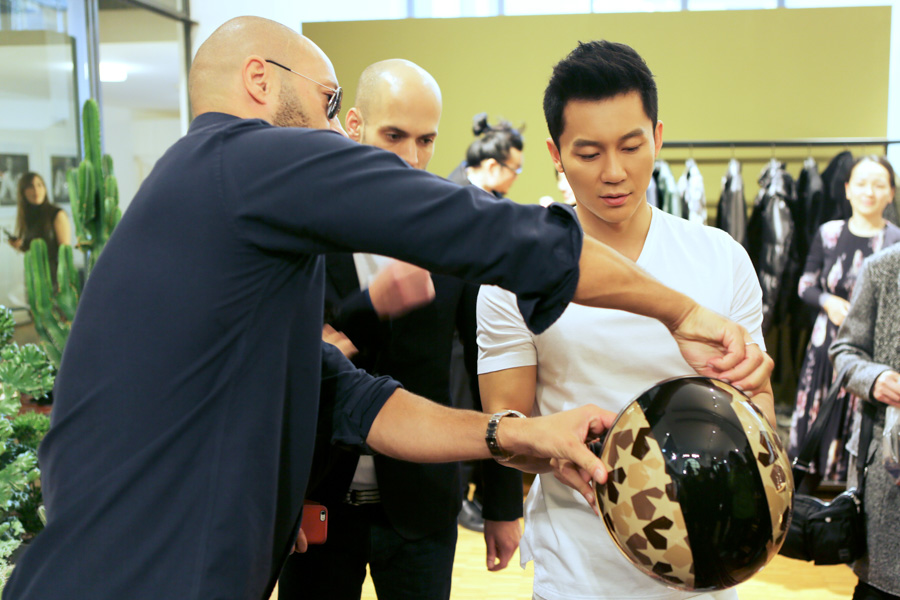 李晨诠释“白衬衫男神” 遇机车头盔爱不释手