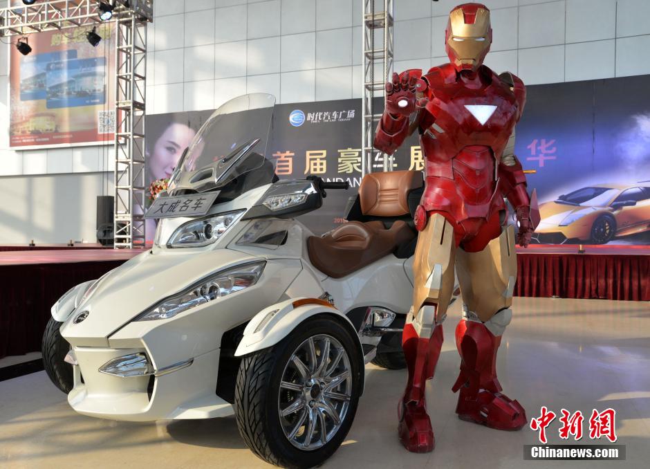 1月23日,河北省邯郸市首届豪车展嘉年华拉开帷幕,车展上除香车美女云集、争芳斗艳外,还有Cosplay车模前来助阵。中新社发 郝群英 摄