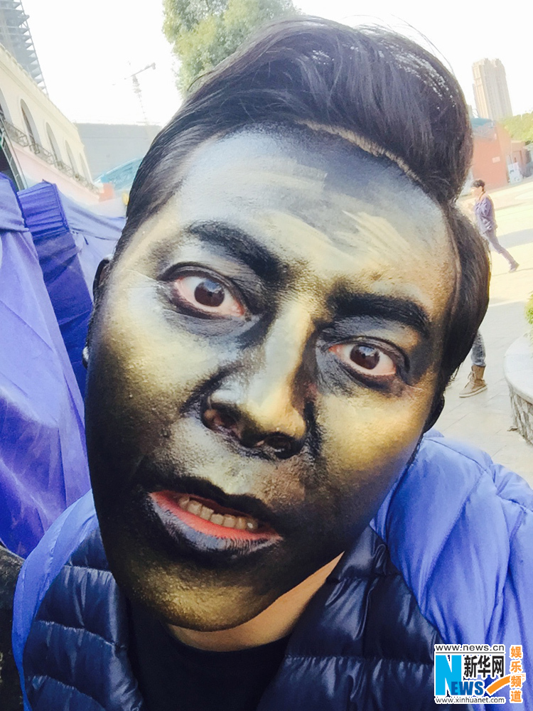 沙溢曝变身“铜人”照 黑面涂金亲身体验站街铜人
