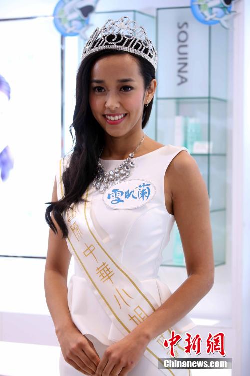 1月28日,《2015国际中华小姐竞选》获奖佳丽在香港出席选美赞助商举行的颁奖活动。图为冠军蔡美霆。她来自悉尼,决赛时表现突出被誉为悉尼“黑珍珠”。中新社发 洪少葵 摄