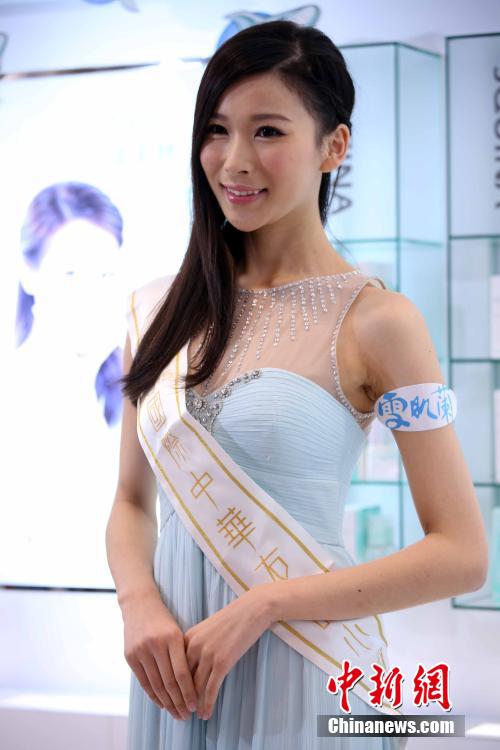 1月28日,《2015国际中华小姐竞选》获奖佳丽在香港出席选美赞助商举行的颁奖活动。图为来自奥克兰的友谊小姐金诗迪。中新社发 洪少葵 摄