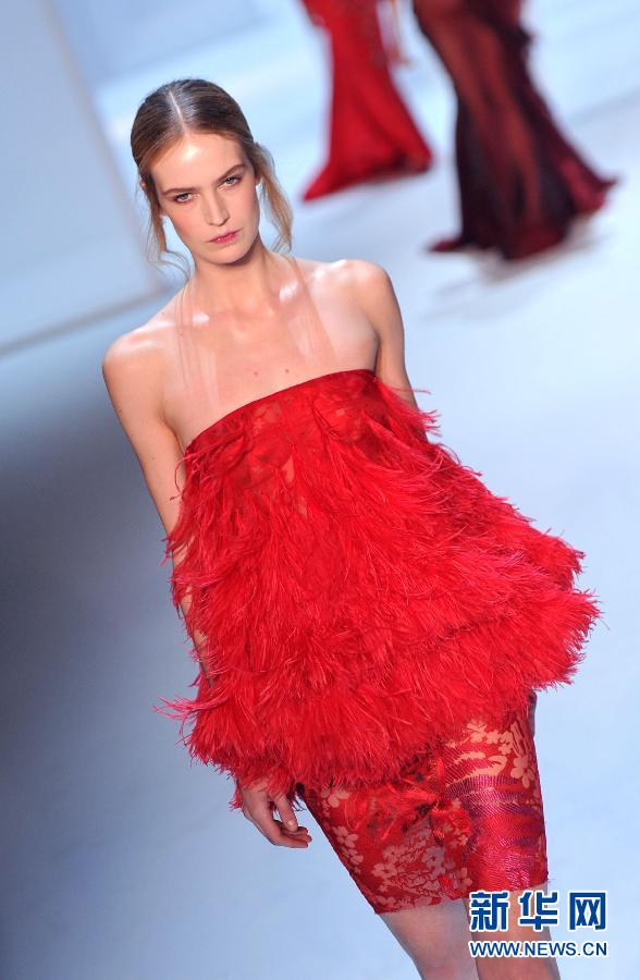 1月28日,在法国巴黎,模特身着“蝶舞迷香”主题礼服走秀。当日,由中国设计师兰玉创作的高级定制婚纱时装作品“蝶舞迷香”亮相巴黎2015春夏高级时装周。 新华社记者陈晓伟摄