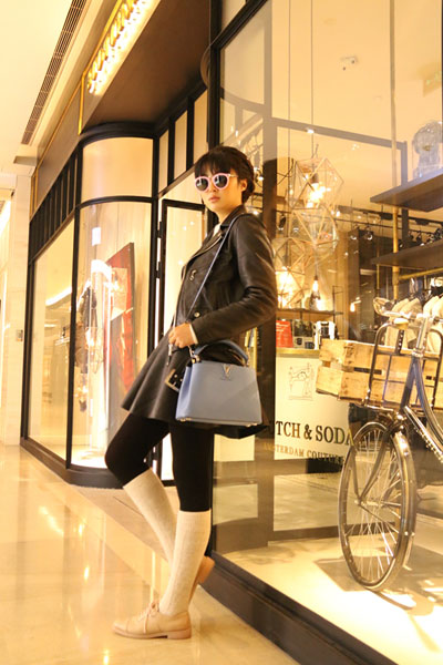 日前,甘露一组休闲时尚街拍曝光。街拍照片中,甘露身着机车皮衣、佩戴复古墨镜,清新俏皮编发巧妙地打破了全黑造型的劲酷感觉,甘露瞬间化身摇滚甜心范儿。