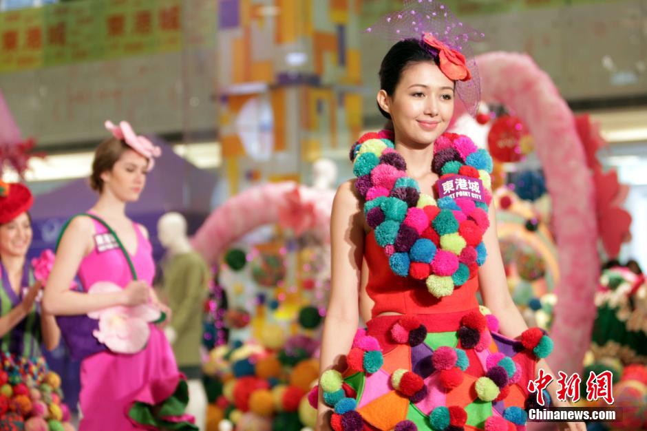 1月29日,靓丽模特演绎羊毛艺术设计家为国际纯羊毛标志成立50周年推出的时装。当天,香港东港城“春意绵绵牧羊花园”开幕。举办一系列以“羊” 及“羊毛”为主的展览,让市民体验羊毛艺术及编织的乐趣。中新社发 洪少葵 摄