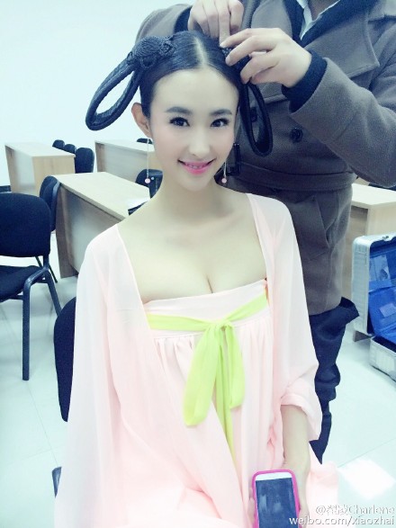 在兽兽晒出的照片中,兽兽身着低胸衣裙,造型师正在给她梳“哪吒头”,似是在cos《武媚娘传奇》中武媚娘初入宫时少女时期的装扮。对于兽兽的性感低胸装,有网友评价:”“小心只剩头!”似是调侃《武媚娘传奇》的“封胸”事件。(实习生叶子/文)