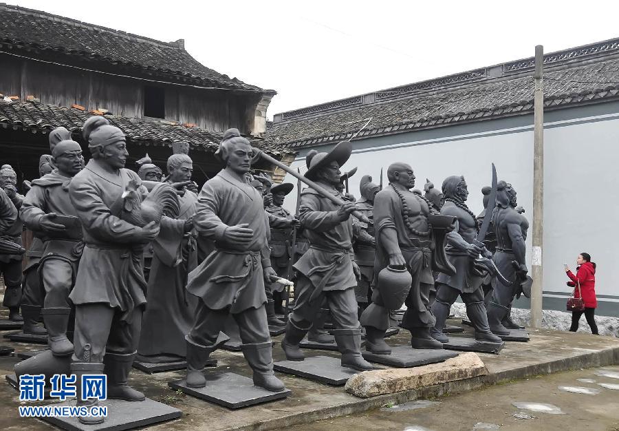 这是2月1日拍摄的浙江奉化泥塑艺人朱茂盛创作的“水浒”人物泥塑。从2008年开始,深爱“水浒”故事的浙江宁波奉化市尚田镇鸣雁村泥塑艺人朱茂盛开始创作“水浒”108将泥塑。经过几年的努力,目前,朱茂盛已经创作完成102尊泥塑,余下的6尊人像已基本成形,预计于今年4月全部完成。这些水浒人物泥塑每个身高2米左右,重约250公斤。新华社发(胡学军)