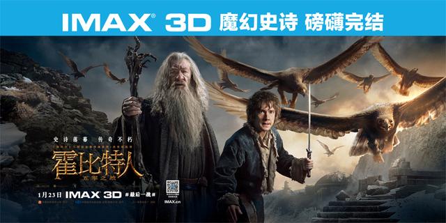 腾讯娱乐讯 自1月23日上映以来,《霍比特人:五军之战》(以下简称《霍比特人3》)掀起了2015年开年的首波观影热潮,截至2月1日在中国市场已斩获约5.75亿票房。作为整个系列的终结篇,《霍比特人3》被赋予了特殊的告别意义,而IMAX 3D版本更受到许多“魔戒”和“霍比特人”粉丝们的追捧。许多影迷不断二刷、三刷甚至五刷IMAX版本,而《霍比特人3》从票房和观影数量上已超越以往IMAX在中国的所有寒假档影片。