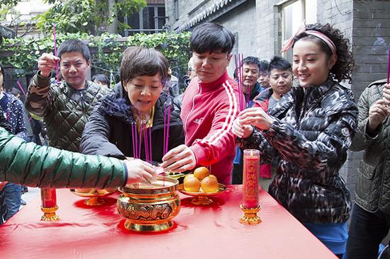 《我的岳父会武术》开机宋丹丹与肖央上香