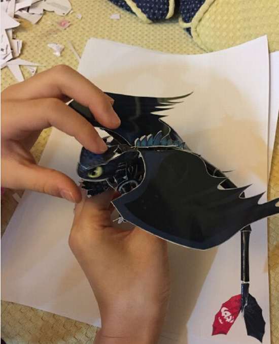 张艺谋女儿做手工认真专注