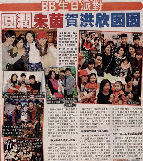 据香港媒体报道,洪欣、周家蔚、陈倩扬的子女长大好快,近日分别举行生日派对庆祝。