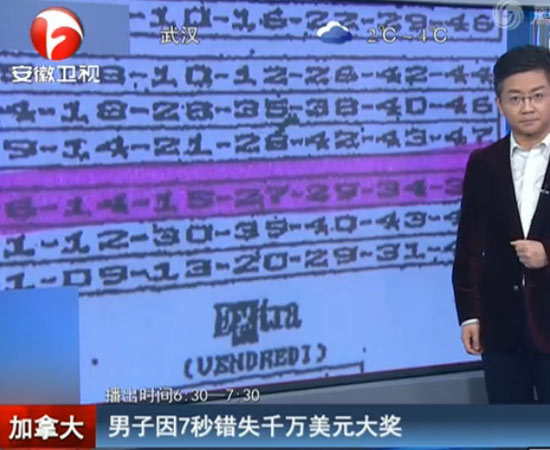 彩票出票晚7秒男子错失大奖!合人民币1.37亿元据央视新闻频道报道,加拿大魁北克的一名男子在2008年买了两张彩票,其中的一张中了2700万加元(约合人民币1.37亿元)的大奖。但这名男子最终却没能获得奖金,因为这张中奖彩票的出票时间比购买彩票的截止时间晚了7秒。