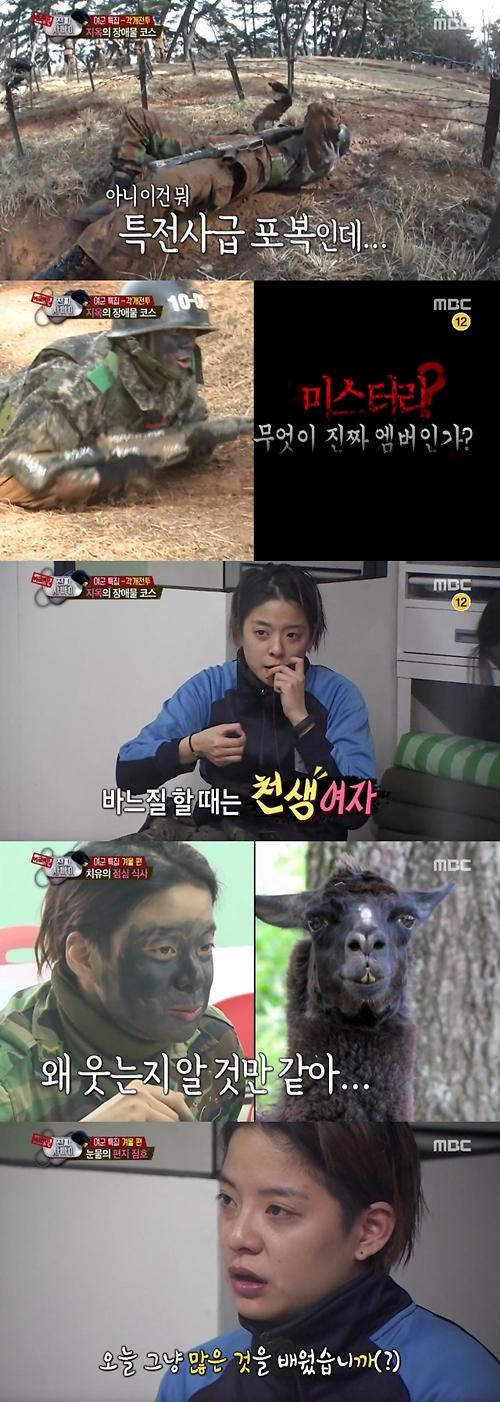 当天,由于军队专用术语和难以理解的高难度词汇,Amber游走在“精神崩溃”边缘,情绪低落。在接下来的制式训练中也靠着看眼色孤军奋战。继上一期节目中因韩语不畅向小队长以下达御令口吻说出“盼忘其事”后,Amber再次以其独特的军队用语令观众捧腹。教官命其“通过排水管道”,由于韩语谐音,她大声重复道“无业游民通电话”,使两名男教官目瞪口呆,但是在看到Amber认真并高质量地完成规范动作后,最终选择保持沉默。