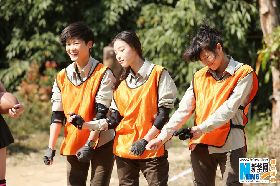 图:倪妮李宇春胡杏儿组队打比赛 姐妹仨左拥右抱