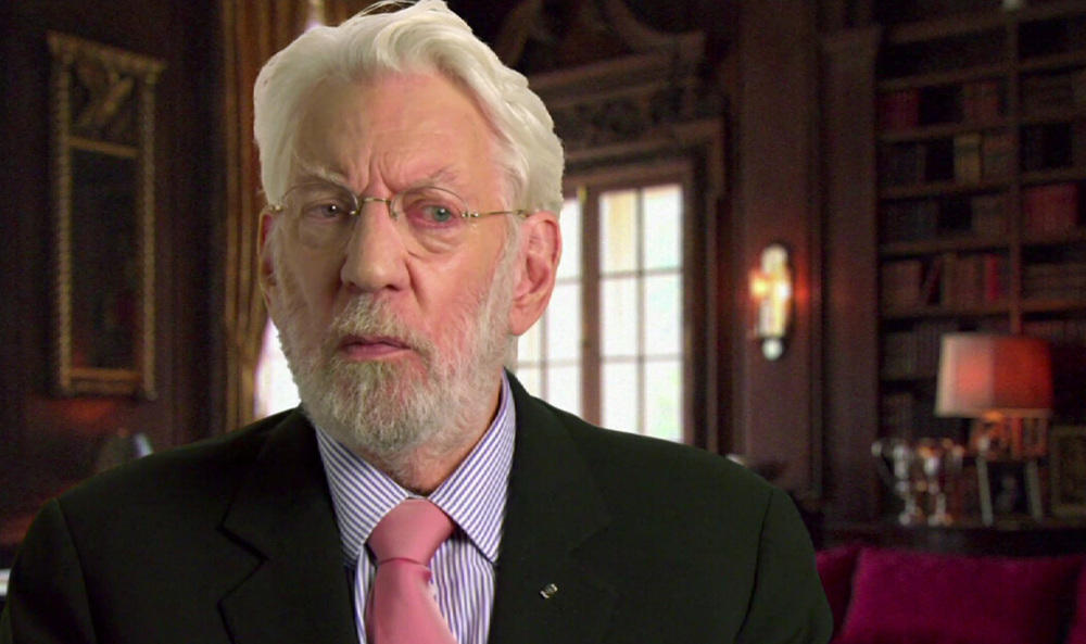饰演斯诺总统的唐纳德·萨瑟兰接受采访