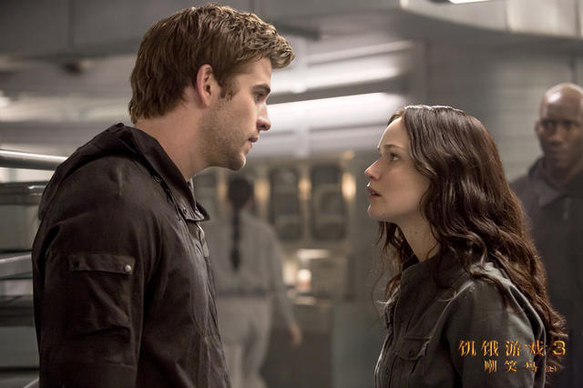 盖尔与凯妮丝为了皮塔激烈争吵(利亚姆·海姆斯沃斯、詹妮弗·劳伦斯饰)