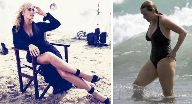 腾讯娱乐讯 根据台湾媒体报道,好莱坞影星凯特温斯莱特(Kate Winslet)1997年演出电影《铁达尼号》,以女主角“萝丝”身分爆红并受到国际关注。她2012年嫁给第3任企业家老公,去年底跟家人一起到纽西兰度假,被拍到大腿肉肉的泳装照;事隔1个月为杂志拍摄照片,身材却一下子苗条了不少,被网友质疑“PS过头”。