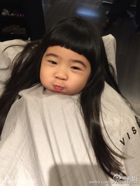 2月7日下午,曹格妻子吴速玲在微博晒出姐姐Grace和Joe的近照,兄妹俩跟着妈妈出门,姐姐还去理发店剪了头发,坐在椅子上嘟嘴的她愈发可爱。