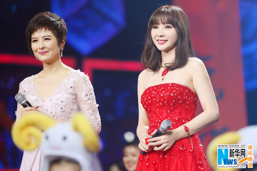 柳岩五套裙装惊艳主持网络春晚 重执话筒优雅大方