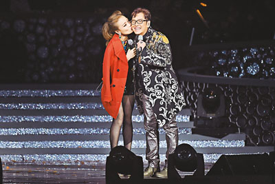 搜狐娱乐讯 北京时间2月24日消息,据香港媒体报道,谭咏麟演唱会前晚来到第十场,并请来了嘉宾容祖儿。初四穿上大红外套的容祖儿极为应节,人称“校长”的谭咏麟介绍她出场时更称赞她是乐坛最勤力的歌手之一。当晚容祖儿男友刘浩龙也捧场,除此之外,李嘉欣与老公许晋亨、邓萃雯、黄日华及贾思乐等也是座上客之一。