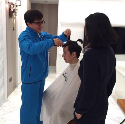 成龙为儿子剪发